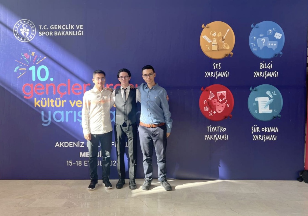Gençlik ve Spor Bakanlığı’nın bu yıl onuncusunu gerçekleştirdiği “Gençler Arası Kültür ve Bilgi Yarışması”nda öğrencilerimiz büyük bir gurur yaşattı. Daha önce Adana birinciliğini kazanan Öğrencilerimizden Sarp ÖZMETE, Sarp Deniz ARIKAN ve Yusuf Efe YİĞİT, Gençlik ve Spor Bakanlığı tarafından bu yıl onuncusu düzenlenen "Gençler Arası Kültür ve Bilgi Yarışması'nda" Adana birinciliğinden sonra Akdeniz bölge birincisi oldu.